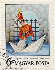 1987-ben adott ki a Magyar Posta egy Mesehősök című sorozatot, melynek egyik darabján egy papírcsónak is látható. Michel Grand hívta fel rá a figyelmünket, akinek a hobbija a papírhajtogatáson kívül a bélyeggyűjtés, speciálisan az olyan bélyegeké, amelyeken origami modellek is láthatók.