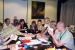Egy lengyel résztvevő magyaráz egy olasz résztvevőnek a magyar origami találkozón Budapesten