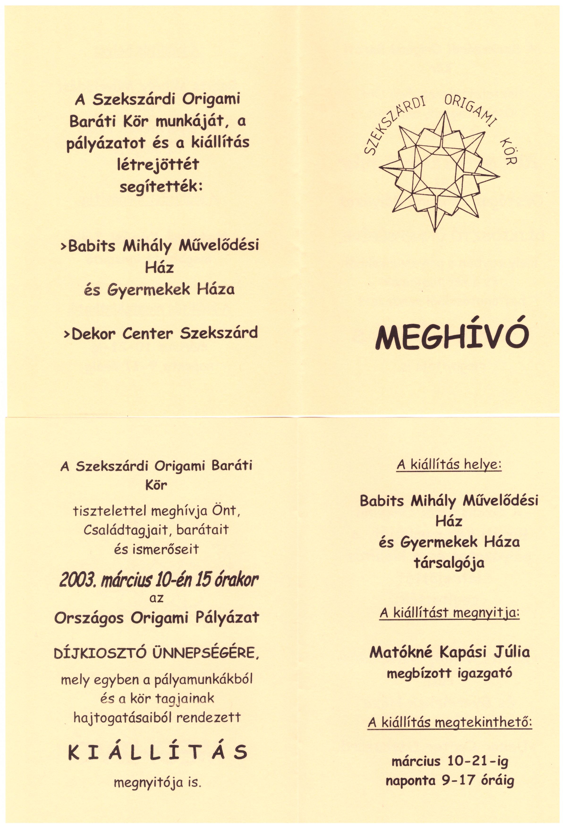 14. Nemzetközi és Országos Origami Találkozó - 2003 Kecskemét |