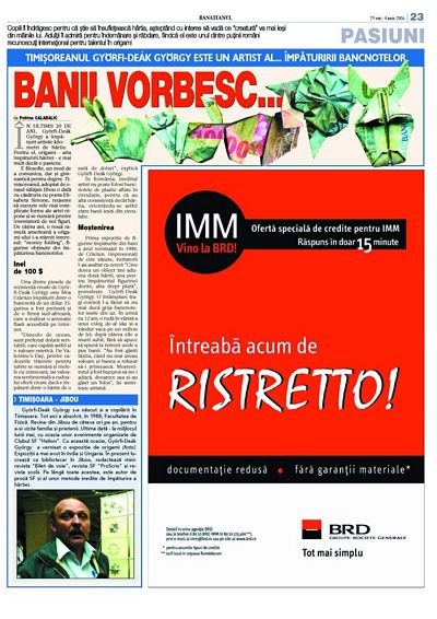 Újságcikk Györfi-Deák György temesvári kiállításáról