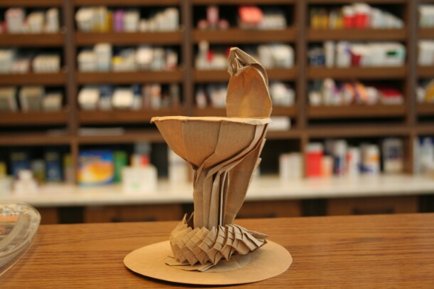 Tesszalációk, gyerekjátékok, közlekedési eszközök, dobozok és az évszaknak megfelelő origami dekoráció. Dióhéjban ennyi mindent láthat az, aki elmegy Pécsett a Melinda patikába, hogy megtekintse Somoskői Zsuzsanna origami alkotásait, amelyek egy része állandóan látható más része folyamatosan cserélődik.