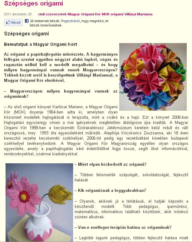 Szépséges origami - Cikk az Ismertség magazinban
