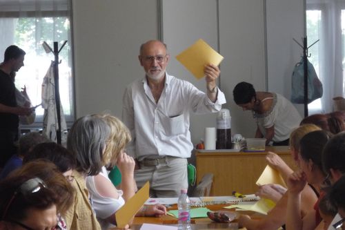 Az egyik emeleti teremben Paulo Bascetta, a találkozó díszvendége a dobókocka hajtogatását oktatta. Az érdeklődők hosszú asztal mellett követték a mester utasításait, a nyelvi nehézségekkel küzdőknek többen tolmácsolással segítettek.