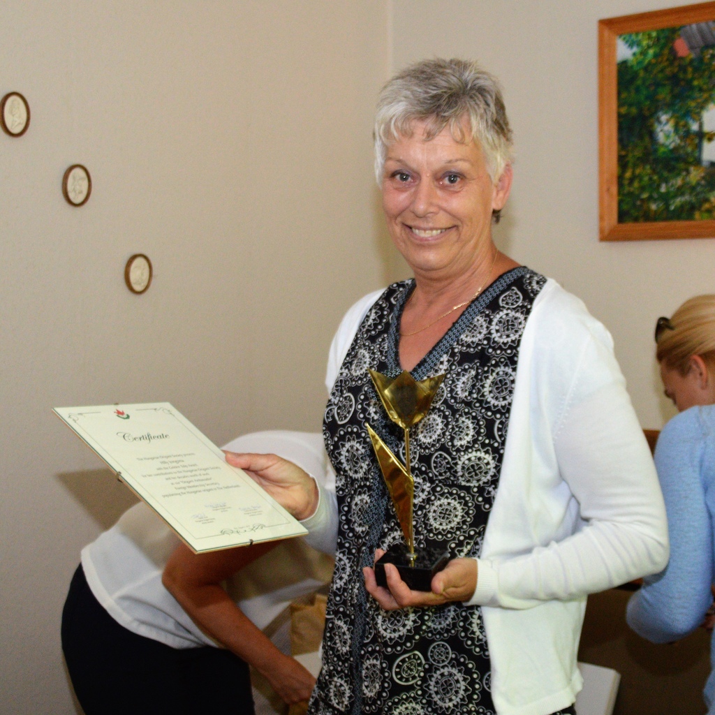 Az Arany Tulipán Díjat 2017-ben Hilly Jongsma kapta. A holland hölgy a Magyar Origami Kör megalapítása után aktívan részt vett a magyar origamis életben. Segített a külföldi kapcsolatok felvételében, általa vehettünk kézbe először eredeti japán washi papírt, ő segített bővíteni a könyvtárunkat és majd 100 holland tagot győzött meg arról, hogy lépjenek be közénk. Ő volt a külföldi titkárunk, nyilvántartotta a külföldi - nemcsak holland - tagokat, intézte az ügyes-bajos gondjaikat, fogadta a tagdíjakat, postázta a magazinokat, reklámozta a Kört. Volt év, amikor szinte több holland tagunk volt, mint magyar... Nélküle, a munkája nélkül nem tudtuk volna túlélni a hullámvölgyeket, amikor nem volt annyi magyar tagunk, hogy fizetni tudtuk volna a nyomdaköltséget. Nagyon sokat köszönhetünk Hillynek! Ez az anyagi és erkölcsi támogatás az elmúlt több mint 25 évben biztos alapot nyújtott nekünk a Magyar Origami Kör megerősödésére és fejlődésére. Szeptemberben, mikor Magyarországon jártak személyesen tudta átadni neki az Arany Tulipán Díjat Wogerné Sági Judit, a Magyar OrigamiKör elnöke.