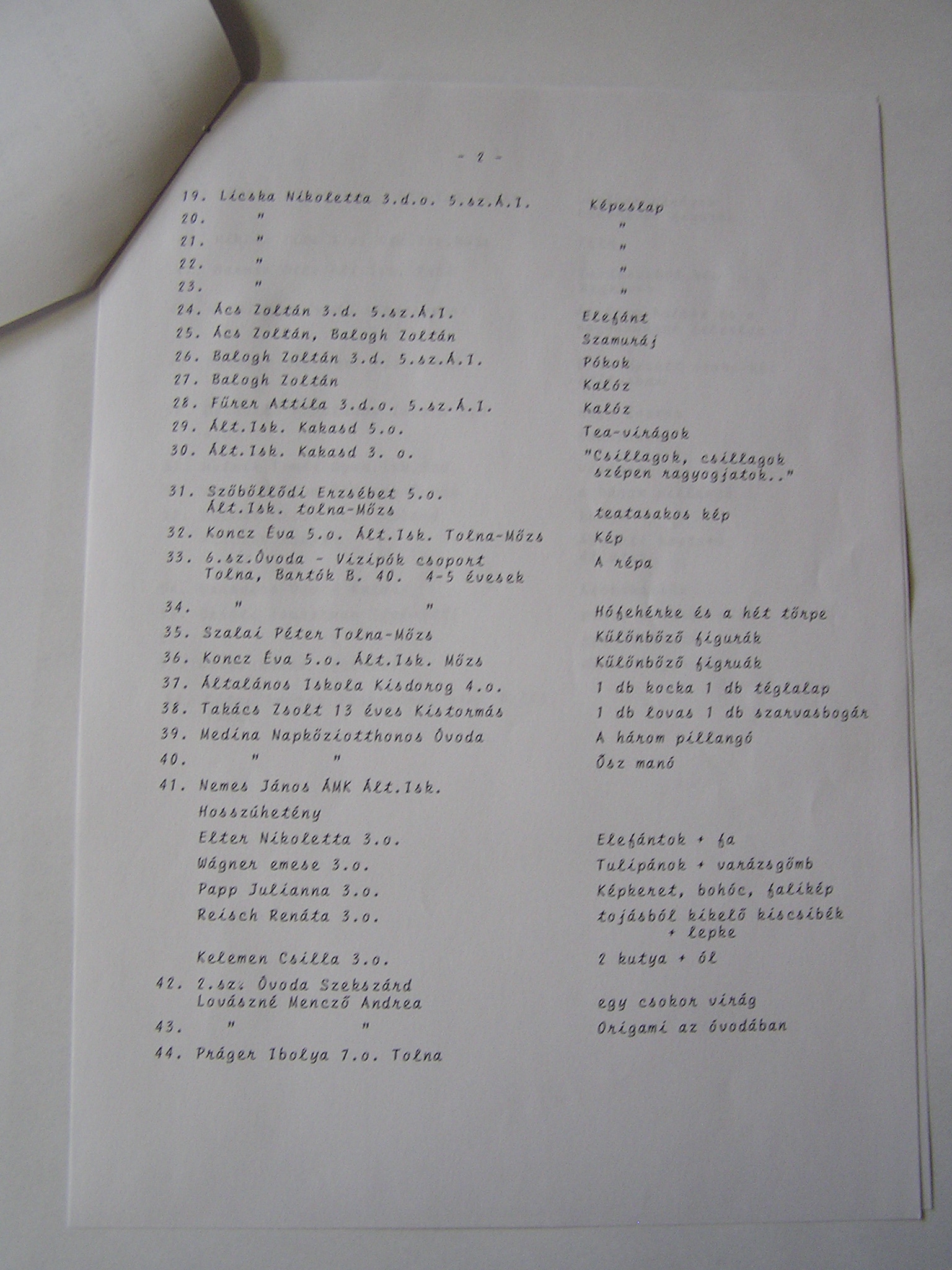 II. díj: Origami az óvodában - Lovászné Mező Andrea - Szekszárd